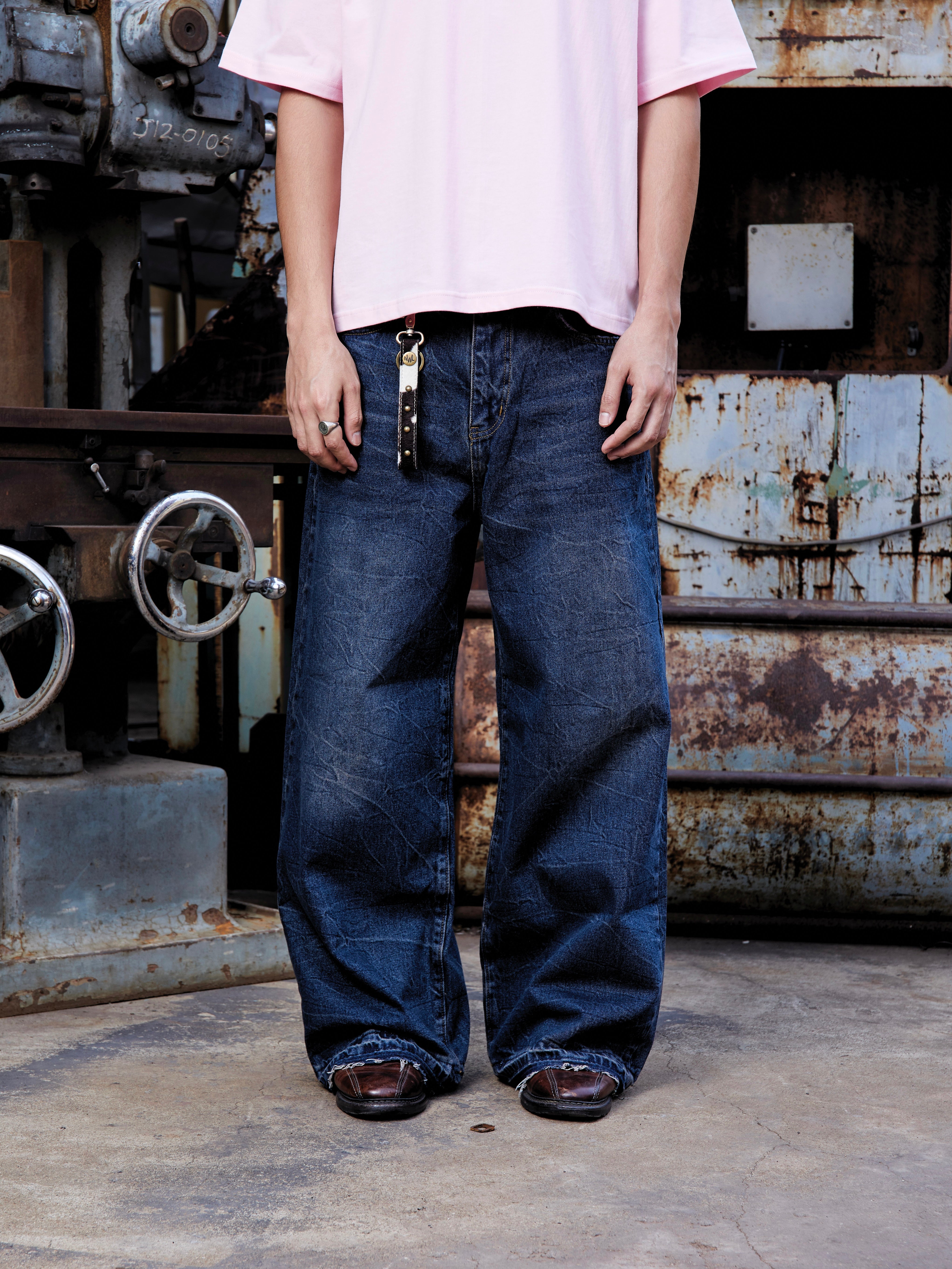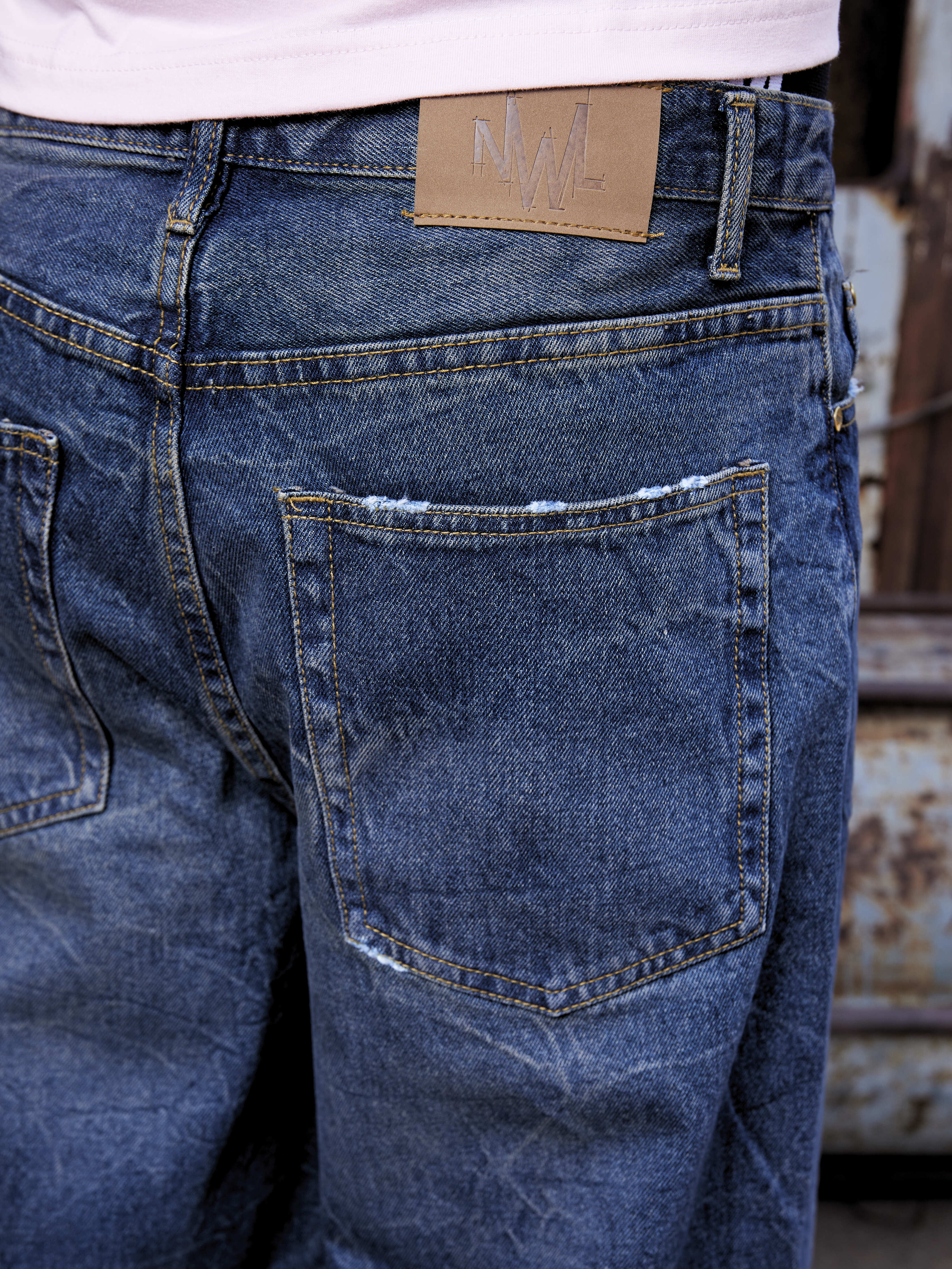 Technical Details: Marble stone washed with Raw-edge hem detail