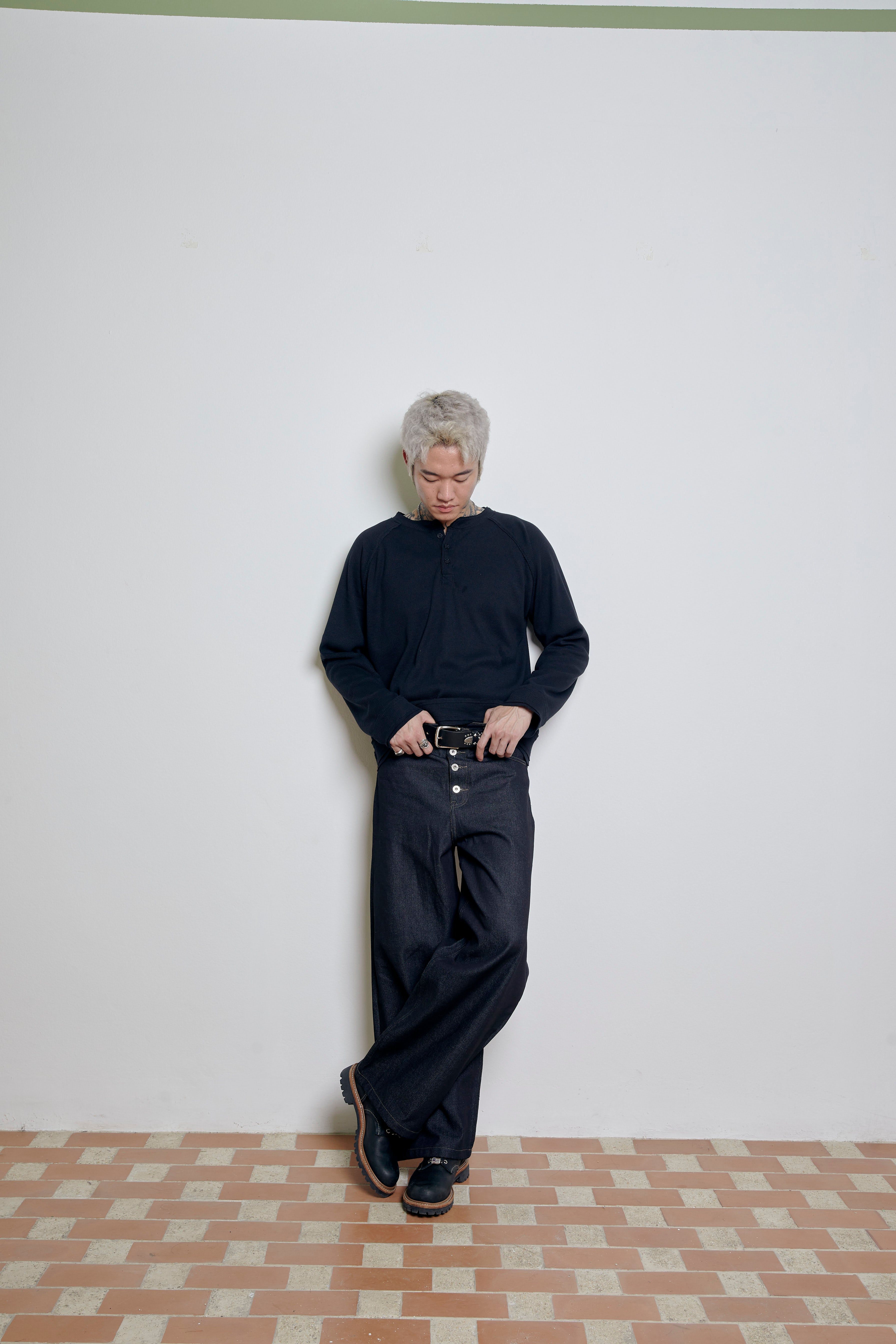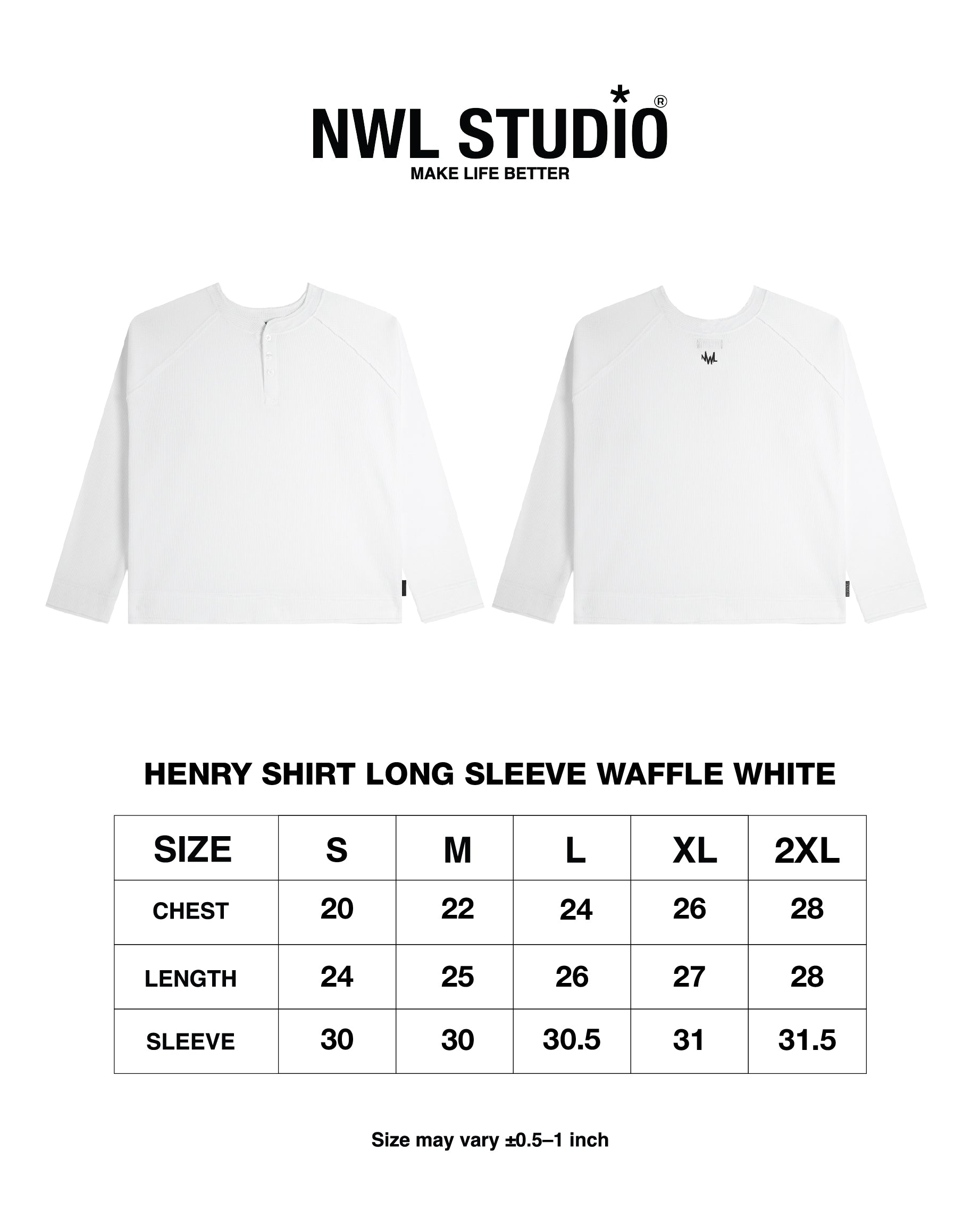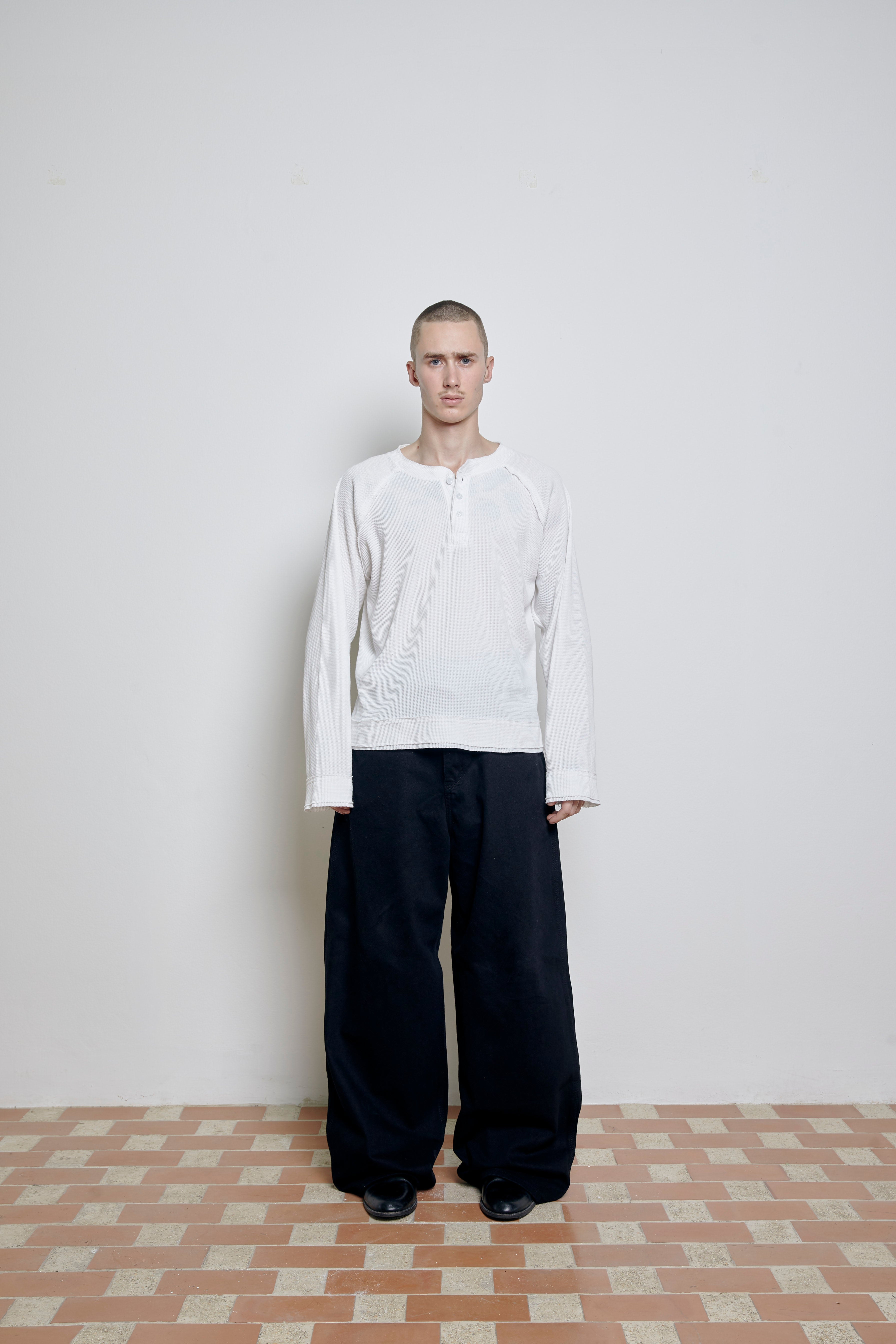Henley White: H eight 177cm. wear M size