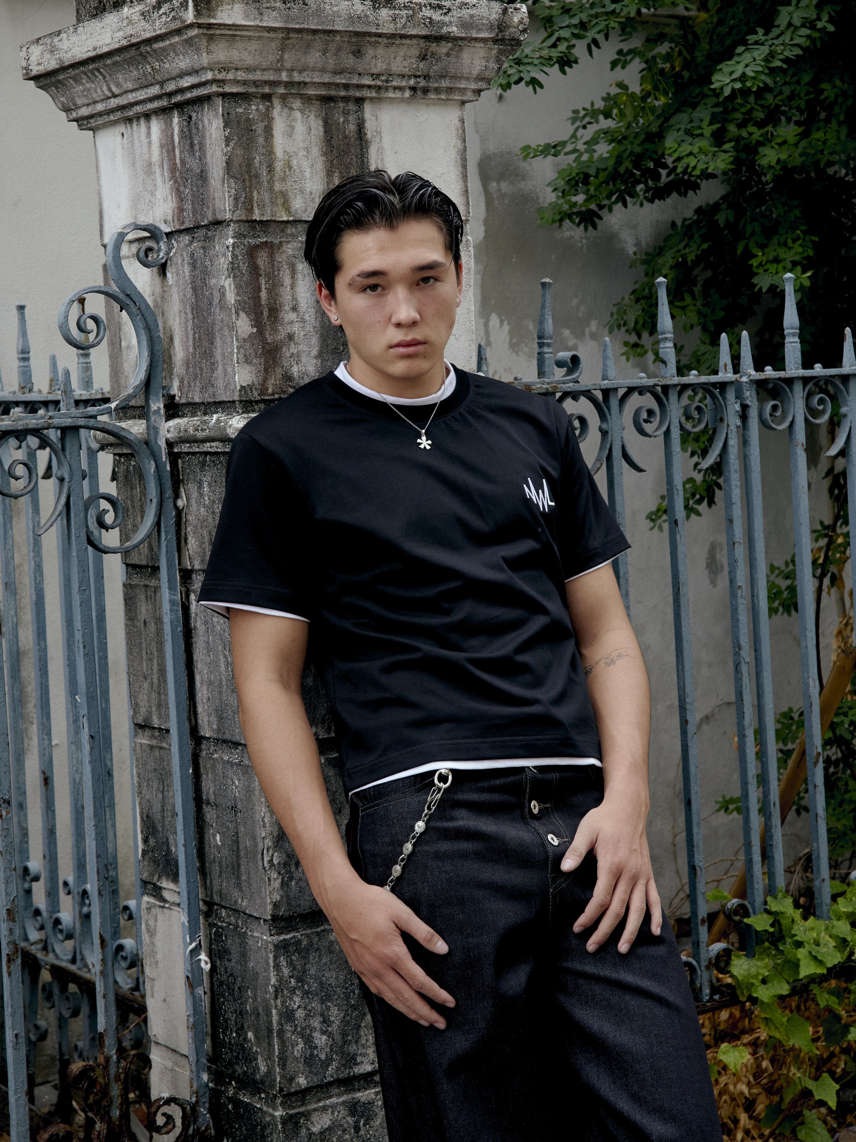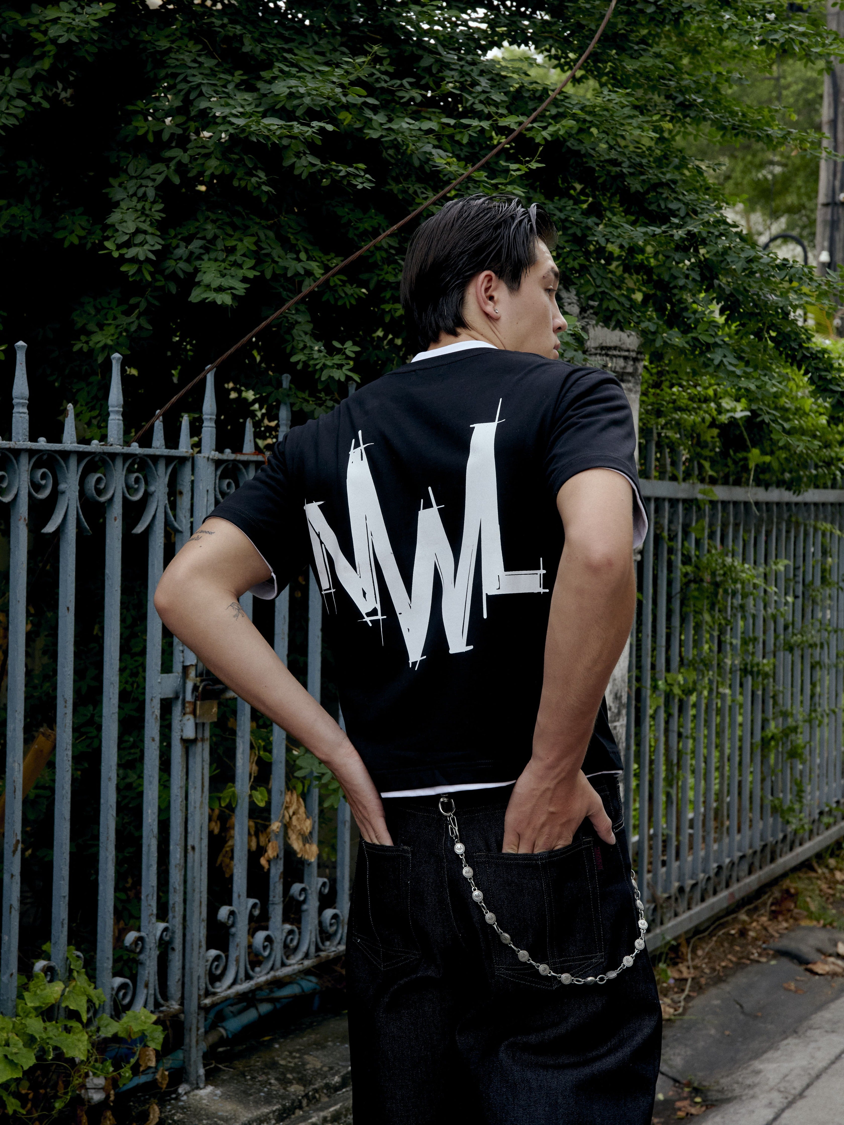Height 184cm and wearing size L (Black Fade, White)