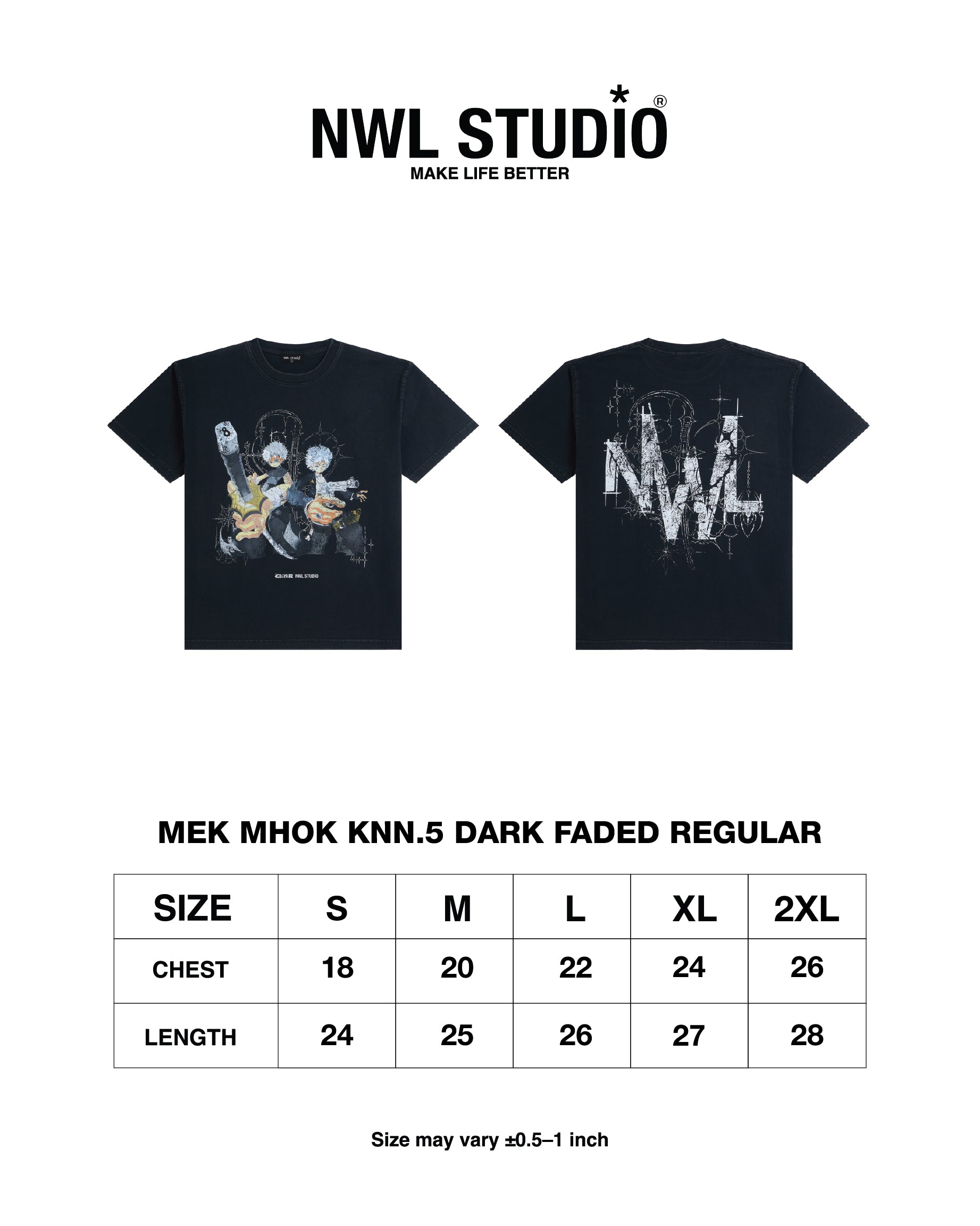 Technical Details: Garment washed & Screen Printed