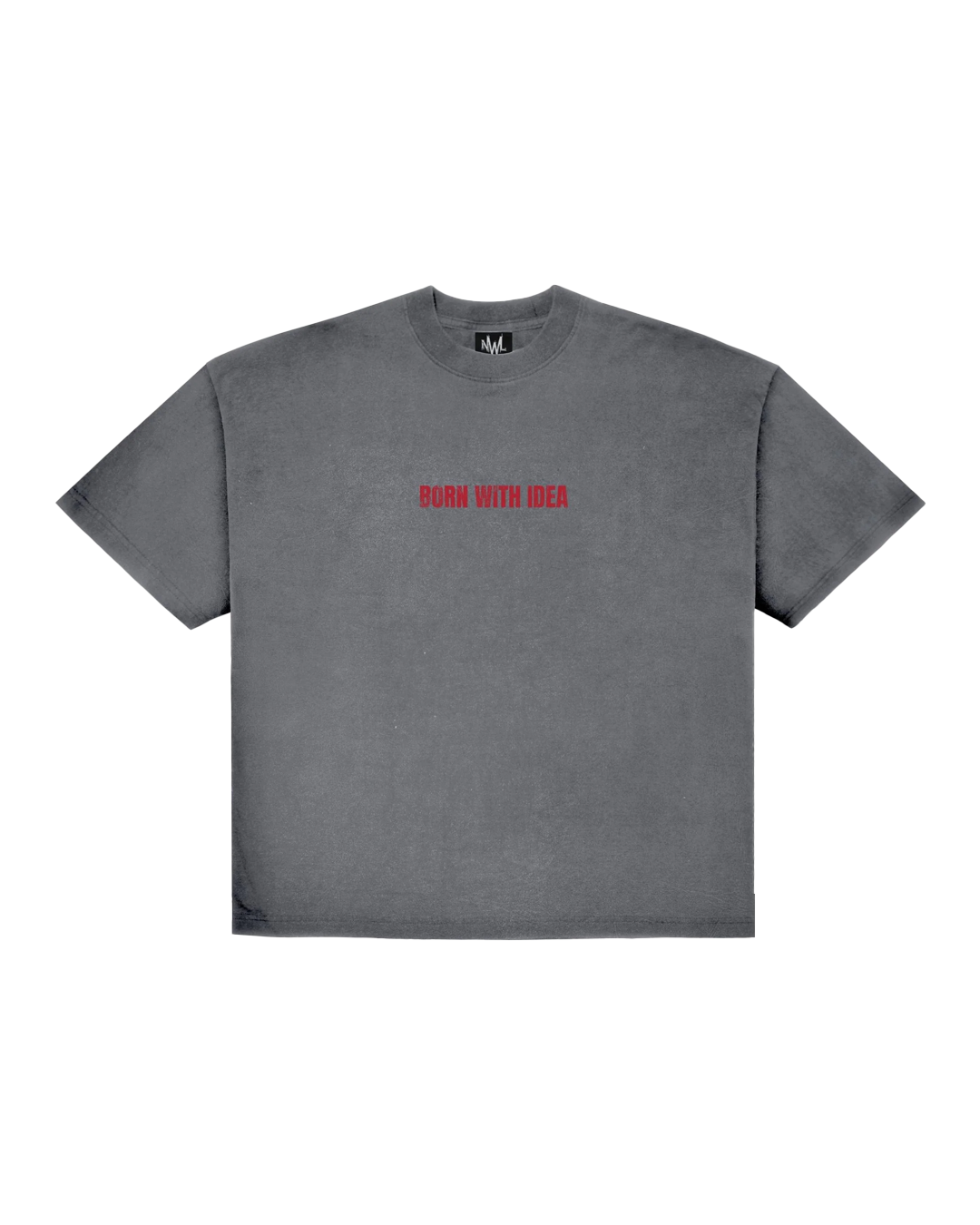 เสื้อยืดฟอกเฟดสกรีนลายภายใต้ collection The idea ลายนี้ชื่อว่าลาย The Idea 01 หรือเรียกอีกชื่อว่า BORN WITH IDEA โดยได้แรงบันดาลใจจาก ปีค.ศ.1902 ได้มีงานประติมากรรม The Thinker ผลงานจากโอกุสต์ รอแด็ง ชาวฝรั่งเศส ตั้งอยู่ที่พิพิธภัณฑ์รอแด็ง กรุงปารีสประเทศ ฝรั่งเศส เป็นรูปปั้น คนกำลังนั่งครุ่นคิดอะไรบางอย่าง หรือไม่ก็กำลังคิดไอเดียใหม่ๆ แต่นั่นก็ทำให้เราได้ค้นพบว่า สิ่งที่ทุกๆไอเดียนั้น ไม่ใช่การนั่งคิดเฉยๆ แต่มันคือการลงมือทำ เป็นที่มาของเสื้อThe Thinker นอกจากนี้NWL อยากเป็นส่วนหนึ่งของการเดินทางตามฝันของทุกคน อยากให้ทุกคนได้แรงบันดาลใจ หรือไอเดียใหม่ๆ ไปพร้อมกับเสื้อBorn With Idea และไอเทมอื่นๆอีกมากมาย ลายสกรีนใช้เทคนิคที่ทำให้ลายดูเก่าเหมือนกับสไตล์เสื้อวินเทจ ทรงเสื้อจะเป็นเเบบ Boxy ทรงเสื้อจะเป็นทรงกล่อง สีเสื้อที่ใช้จะเป็นสีเฟดเทาอ่อน